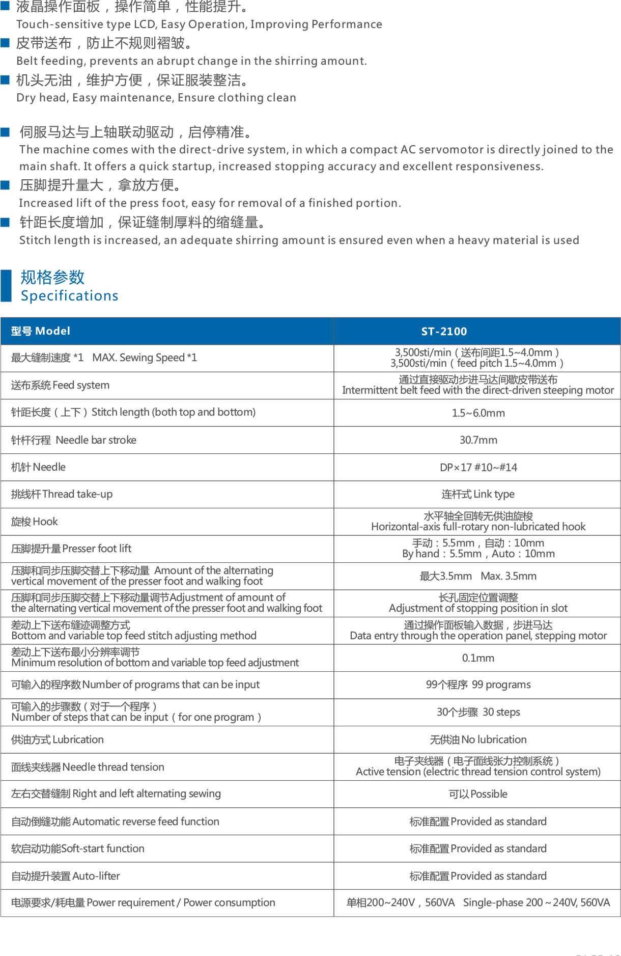 壓腳提升量大,拿放方便。